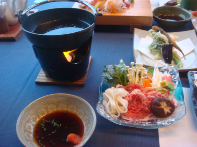 旅館の夕食。豪勢ですわっ明らかに1人分とは思えない