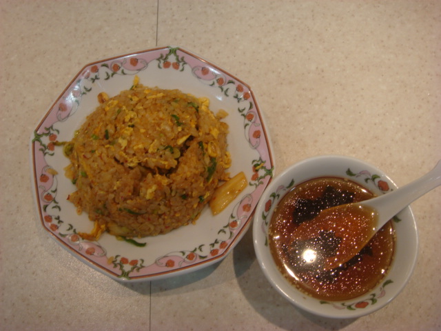 キムチ焼飯注文しました。普通の焼飯と50円しか違わないので
