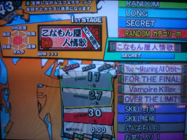 前作ボス曲「Rock to Infinity」解禁かと思いきや変わらず、そして猫叉Master遂にギタドラ参入!!しかし、アンコールってより通常隠し曲向けな気がとてもします。しかも新曲アンコール演出無いし・・・「風神雲竜伝」は何故演出が??