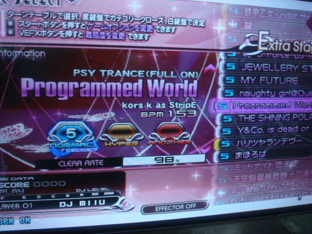 前作DJTでは五段までクリア出来たみたいなので、六段クリアと全曲未プレイ曲(N)HARDクリアが目標であります。