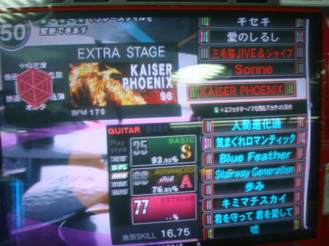 相変わらず帰り道のゲーセンは照明のお陰で写真映りが気に入らないので後日、KAISER PHOENIX・三毛猫JIVE&ジャイブ(BASIC)解禁とXG版演出を撮影する為に別の場所へ行こうと思ってます。