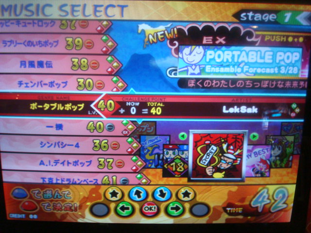 『ポータブルポップ』昨日より解禁可能みたい。初めのステータス画面で「シンパシー4」を解禁させたパスワードを再度入力すると登場!!(EX譜面も一気に解禁)