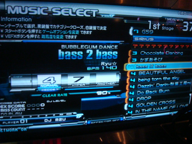 その間を狙ってプレイ。連続で「三毛猫JIVE&ジャイブ」(NOVICE)に譜面にチャレンジしてENCORE出そうとするもパフェ90%で撃沈。