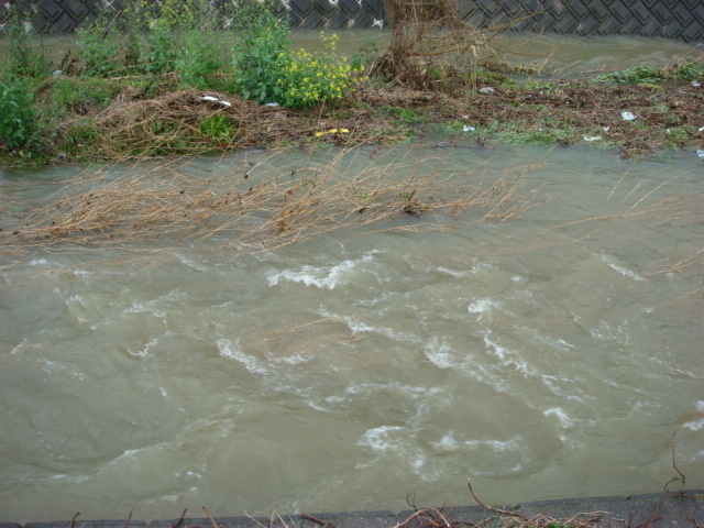 確か「雀川」。普段より水嵩倍増↑