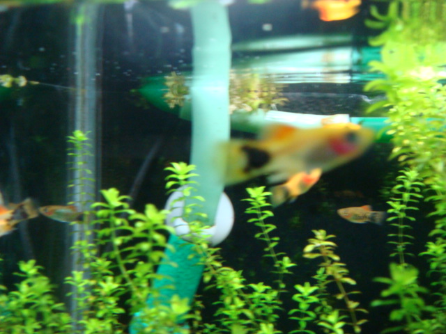 右写真の魚は確か、身体の模様からミッキーマウス・プラティ