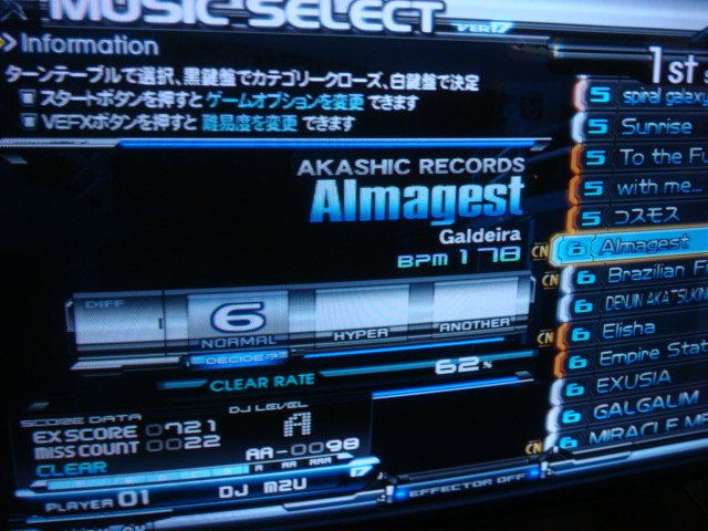 「Almagest」☆6?後半のCNが恐ろしい・・・未だにHARDクリアできてません(汗)ありゃCNをどの指で押すか決めておかないと大変な事になる。