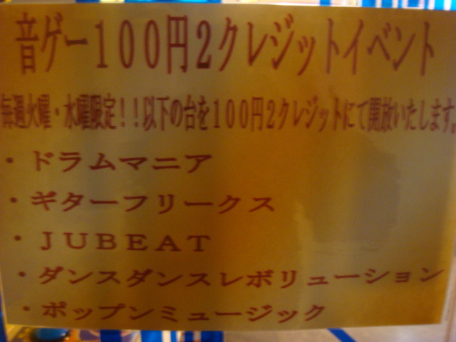 曜日限定!「音ゲー1コイン2クレジットサービス」。