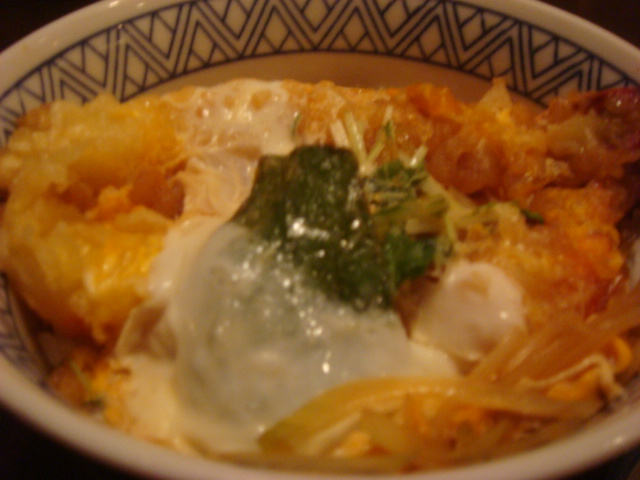天丼のエビを玉子でとじてみました。
