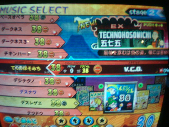 曲選択毎度、画面真ん中の難易度変えないと(緑)のまま。